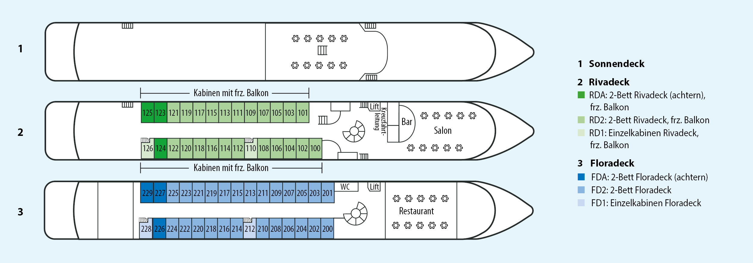 In den Schiffsbeschreibungen erhalten Sie nützliche Informationen zu Bordeinrichtungen, die die Mobilität an Bord erleichtern (beispielsweise Aufzüge oder Treppenlifte). Neben steilen/engen Treppen auf dem eigenen Schiff weisen wir darauf hin, dass Schiffe „im Paket“ (mehrere Schiffe nebeneinander) anlegen können und Passagiere evtl. zusätzliche Treppen auf dem Nachbarschiff überwinden müssen. Alle Flusskreuzfahrtschiffe von 1AVista sind nicht barrierefrei. Für Gäste, die auf einen Rollstuhl angewiesen sind, sind unsere Fluss- und Küstenschiffe leider baulich nicht geeignet.