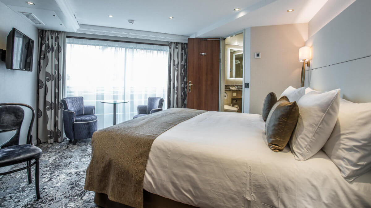 Die Kabinen 244 und 245 sind für Gäste mit eingeschränkter Mobilität eingerichtet und mit einem Bett und mit einem Sofabett ausgestattet. Jedoch sind die Kreuzfahrten nur bedingt für Personen mit eingeschränkter Mobilität geeignet. Bitte kontaktieren Sie uns für eine weitergehende Beratung unter Angabe Ihrer speziellen Bedürfnisse.