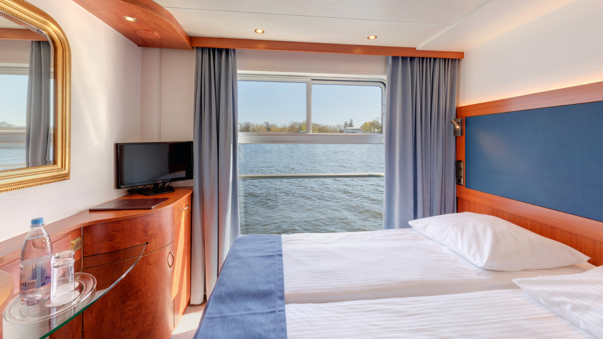 Außenkabinen verfügen entweder über ein Bullauge oder ein Fenster und sorgen somit nicht nur für Tageslicht, sondern ermöglichen auch den Blick auf den Fluss.