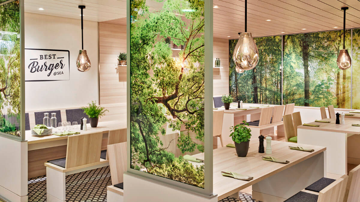 Nahezu alle öffentlichen Bereiche der AIDA Schiffe, wie Bars, Restaurants, Lifte, Außendecks, öffentliche WCs und Kabinen sind barrierefrei erreichbar und mit einer Orientierungsbeschilderung in Profil- und Brailleschrift ausgestattet.